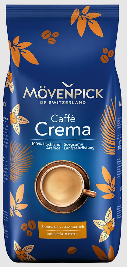 Dieser kräftige Mövenpick Caffè Crema ist eine Premium-Mischung aus sorgfältig ausgewählten Arabica- und Robusta-Bohnen. Das reiche Aroma und der volle Geschmack sind das Ergebnis einer traditionellen Schweizer Röstung, die von der Darboven-Gruppe durchgeführt wird.