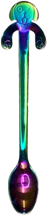 Protruding legs so that it easily fits on a glass or thin cup._x000D_ Alloy steel with rainbow look._x000D_ Dimension: Length 154 mm.