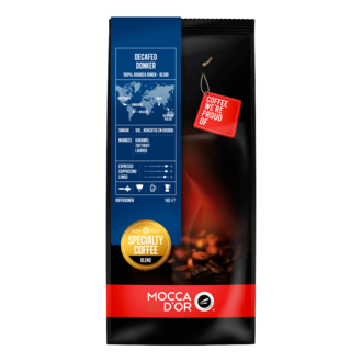 Mocca d'Or Decaffeinated Dark coffee beans consists of decaffeinated 100% Arabica beans. The coffee is sweet in taste spicy surprising nuances of caramel, licorice & bay leaf. Decaffeinated coffee Decaffeinated is decaffeinated according to the DCM meth