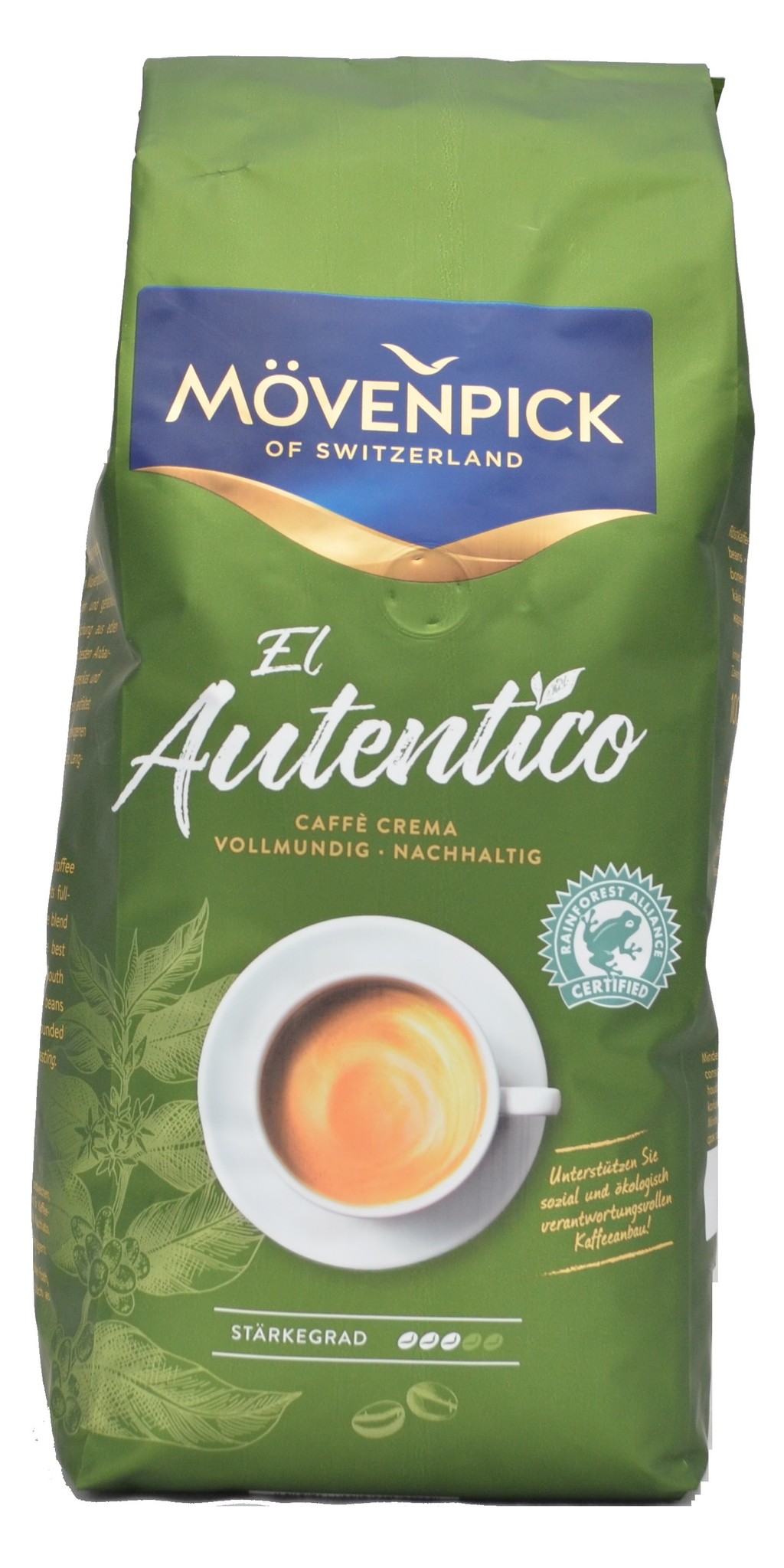 Mövenpick El Auténtico is een premium 100% Arabica koffie met een rijke, volle smaak. Geproduceerd van bonen uit Rainforest Alliance-gecertificeerde plantages in Midden- en Zuid-Amerika. Perfect voor liefhebbers van een milde, maar verfijnde koffie.